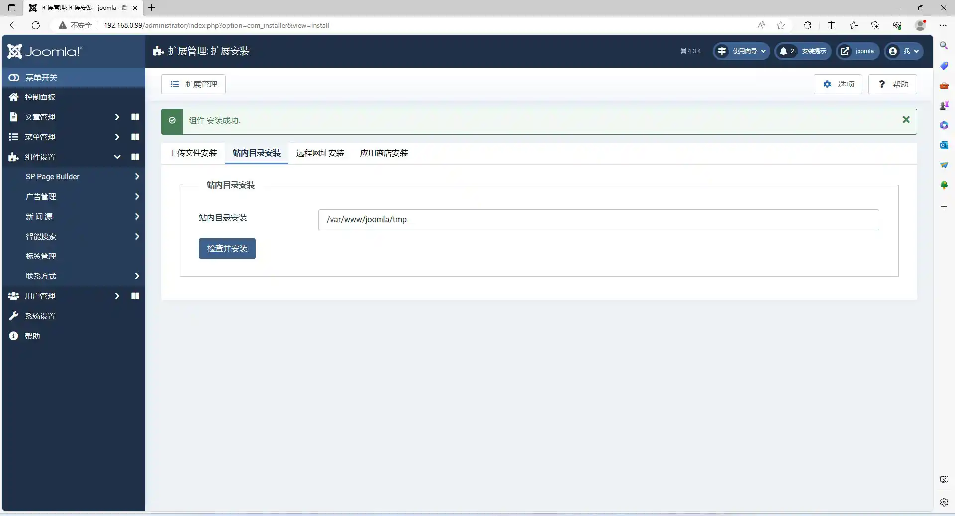 登录后台后第一步先安装中文语言包,去到Joomla官网下载中文语言包